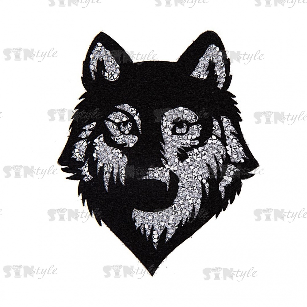 Термоаппликация "Волк" со стразами, размер 82х88 мм