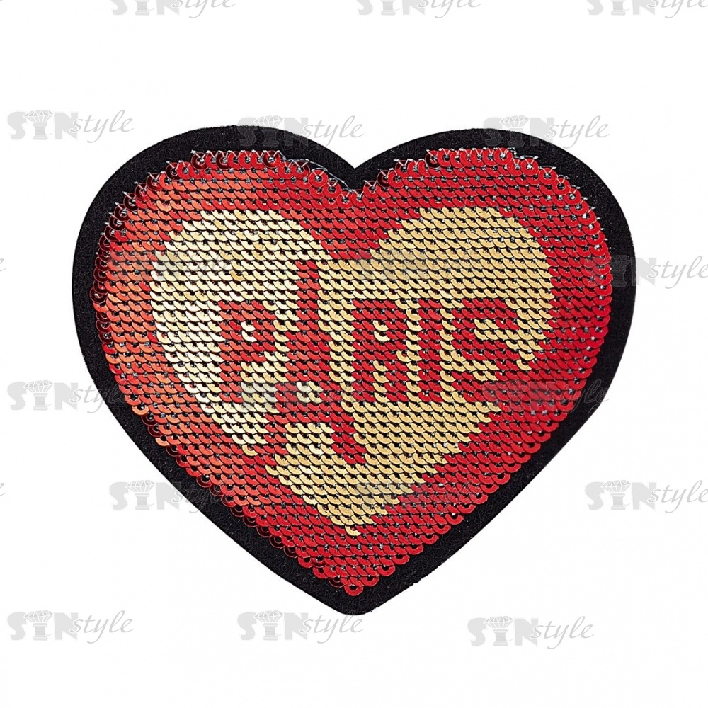 Термоаппликация "Сердце" с пайетками, размер 70х60 мм, цвет золотой
