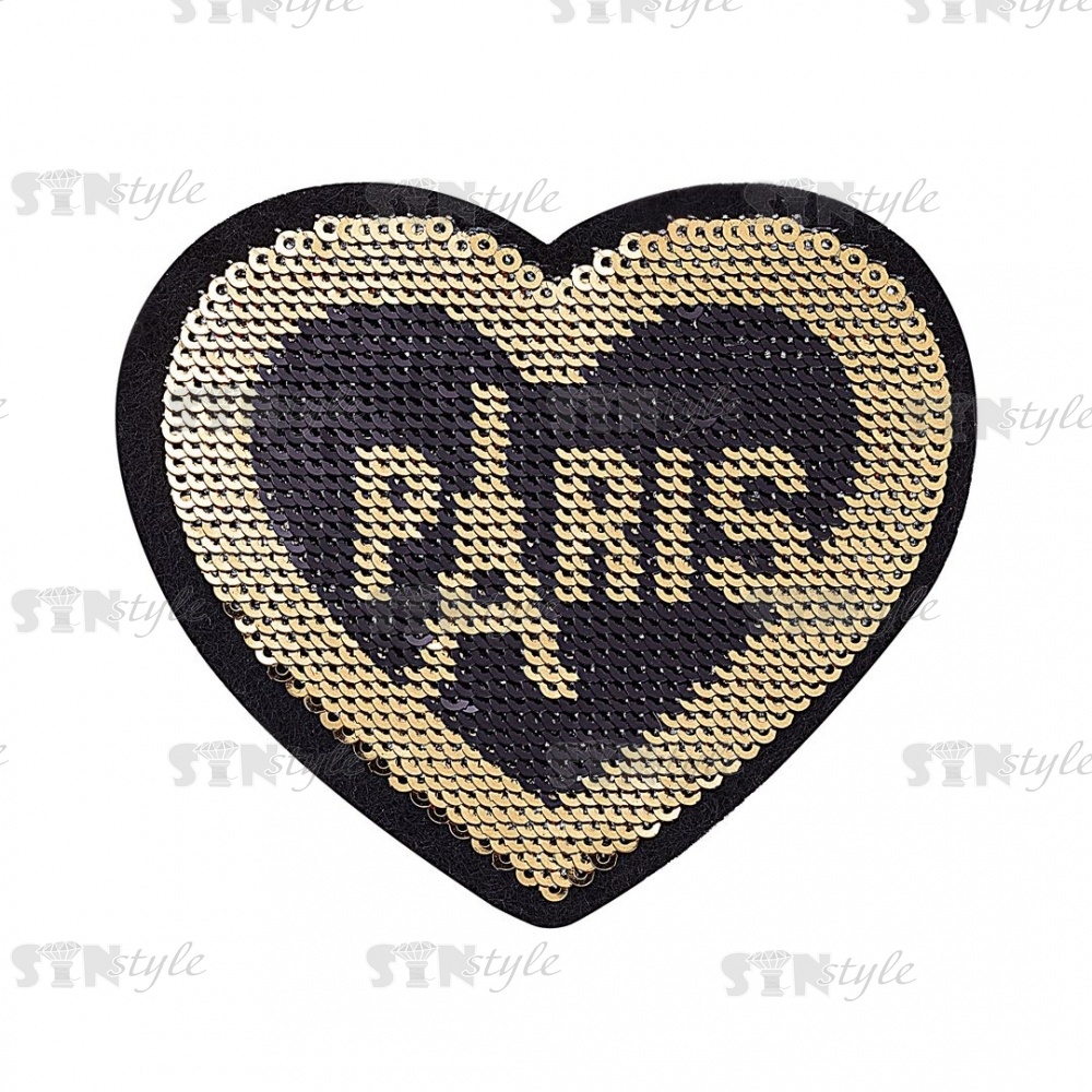 Термоаппликация "Сердце" с пайетками, размер 70х60 мм, цвет черный