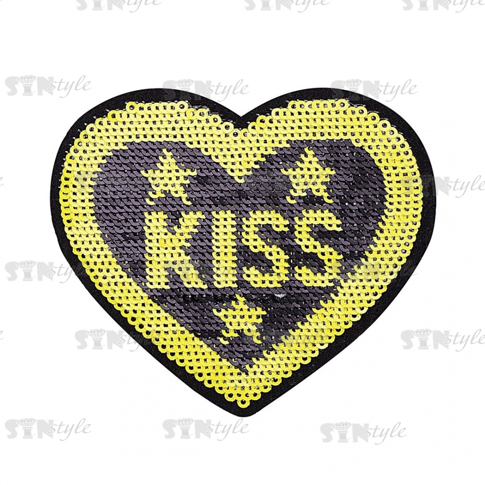Термоаппликация "Сердце" с пайетками, размер 70х60 мм