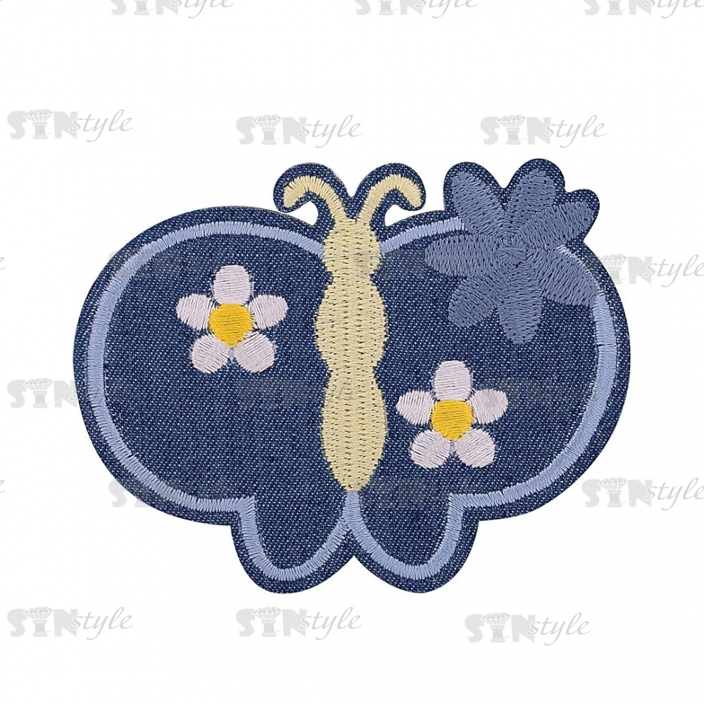 Термоаппликация "Бабочка", размер 80х62 мм, цвет синий