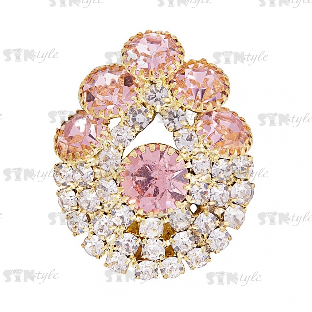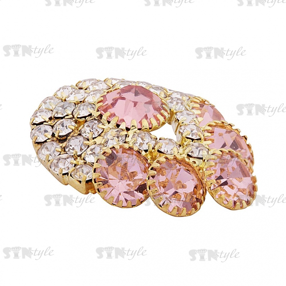 Пуговица металлическая на ножке, размер 17х24мм, цвет золотой, стразы белые и светло-розовые