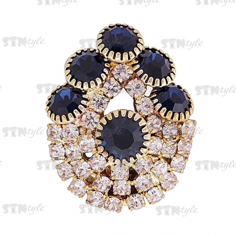 Пуговица металлическая на ножке, размер 17х24мм, цвет золотой, стразы белые и темно-синие