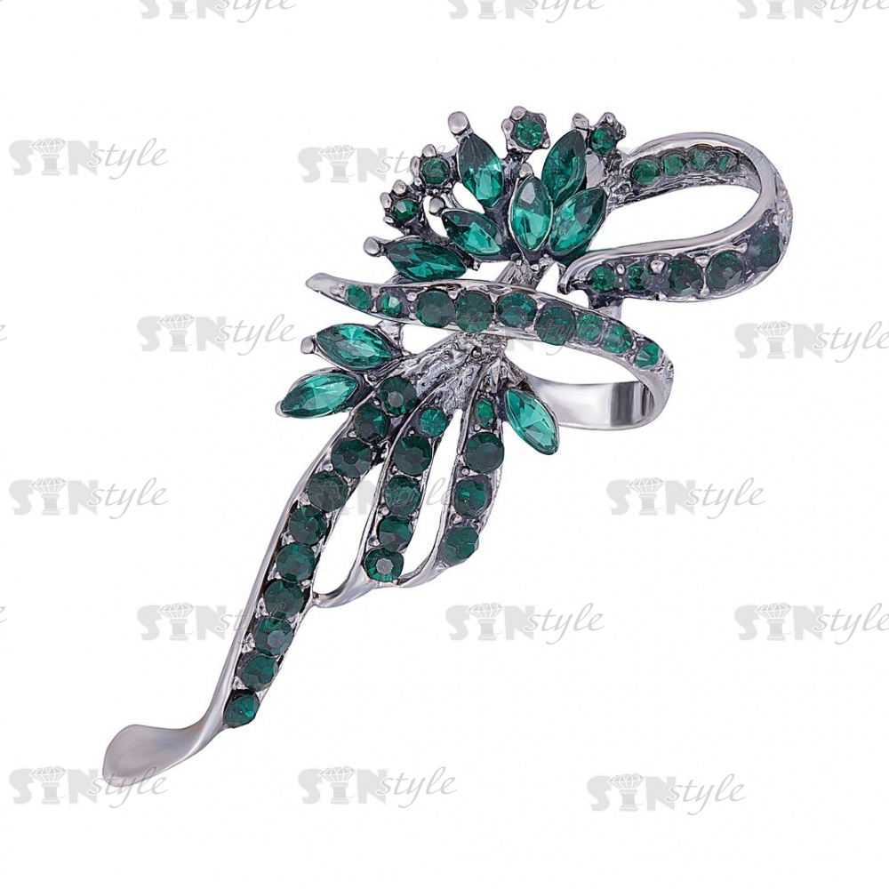 Брошь металлическая со стразами, застежка булавка, размер 25х63 мм, (A9)