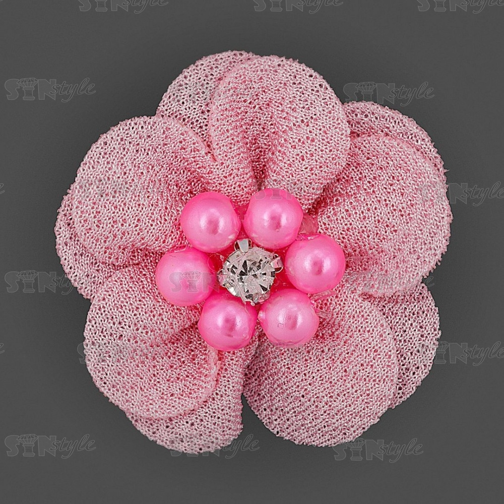 Оригинальный тканевый цветок с бусинами и стразой прекрасно подойдет как отделочный элемент для платья, блузки, театрального костюма, шапочки, косынки берета, повязки, ободка для волос, резинок, заколок, а так же обуви из текстиля. Подобный декор применяется при украшении букетов, подарочной упаковки, праздничных композиций.