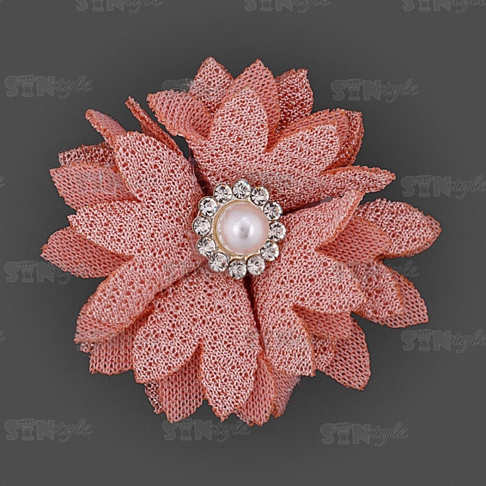 Оригинальный тканевый цветок со стразами и полубусиной под жемчуг. Декоративные цветы имеют широкий диапазон применения: как отделочный элемент для платья, блузки, театрального костюма, шапочки, косынки берета, повязки, ободка для волос, резинок, заколок, а так же обуви из текстиля. Также цветок может быть использован в украшении букетов, подарочной упаковки, праздничных композиций и поможет решить любую задачу декорирования.