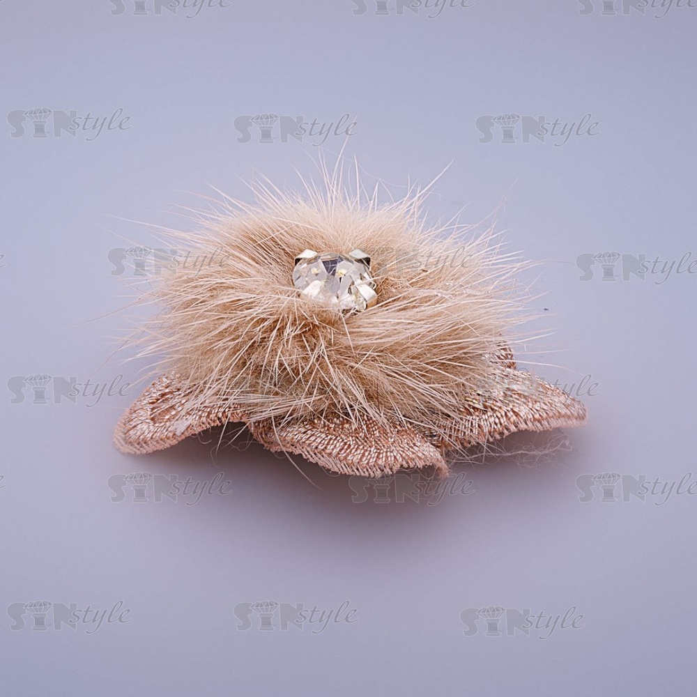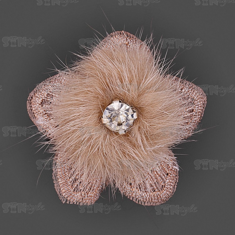 Цветочки декоративные с натуральным мехом, цвет бежевый, размер 40 мм,