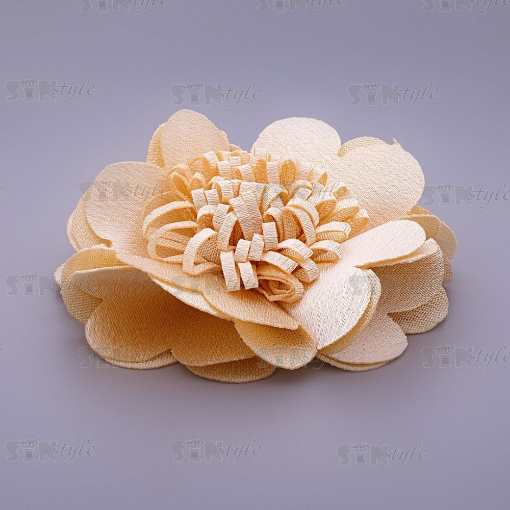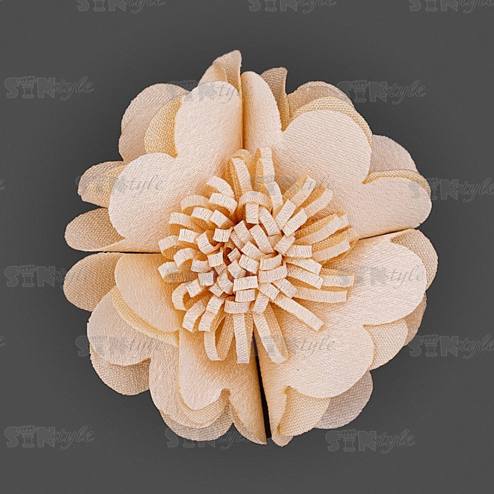 Оригинальный цветок из атласной ткани прекрасно подойдет в качестве отделочного элемента для женского или детского платья, блузки, театрального костюма, шапочки, косынки берета, повязки, ободка для волос, резинок, заколок, а так же обуви из текстиля. Подобный декор применяется при украшении букетов, подарочной упаковки, праздничных композиций.