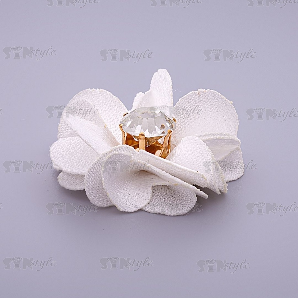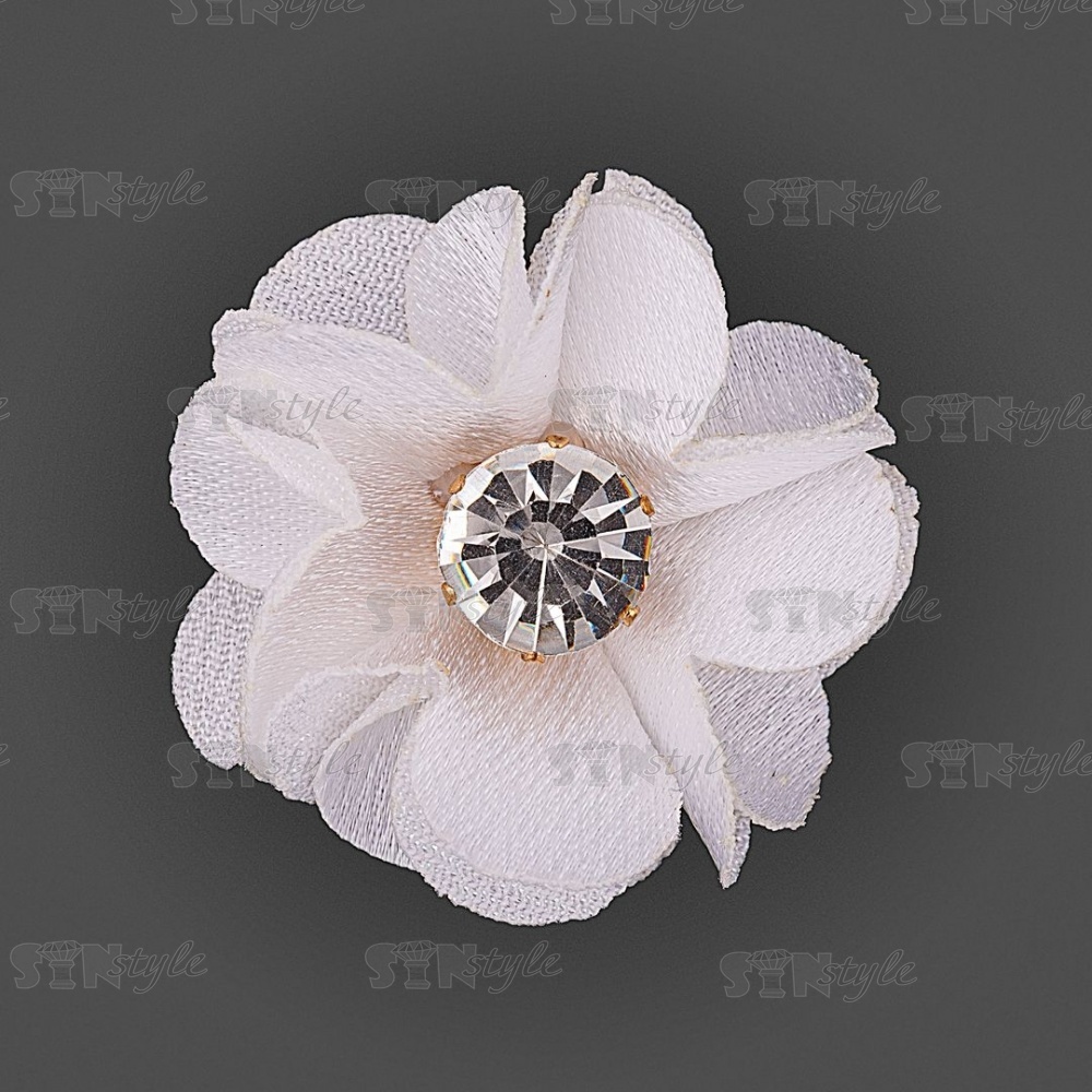 Оригинальный цветок из атласной ткани со стразой. Декоративные цветы имеют широкий диапазон применения: как отделочный элемент для платья, блузки, театрального костюма, шапочки, косынки берета, повязки, ободка для волос, резинок, заколок, а так же обуви из текстиля. Также цветок может быть использован в украшении букетов, подарочной упаковки, праздничных композиций и поможет решить любую задачу декорирования.