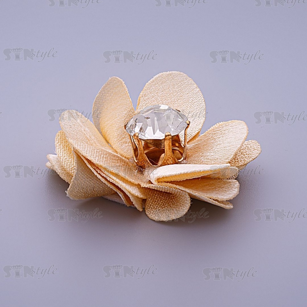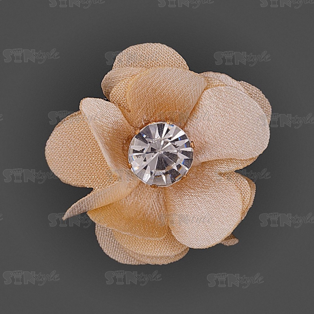 Оригинальный цветок из атласной ткани со стразой. Декоративные цветы имеют широкий диапазон применения: как отделочный элемент для платья, блузки, театрального костюма, шапочки, косынки берета, повязки, ободка для волос, резинок, заколок, а так же обуви из текстиля. Также цветок может быть использован в украшении букетов, подарочной упаковки, праздничных композиций и поможет решить любую задачу декорирования.
