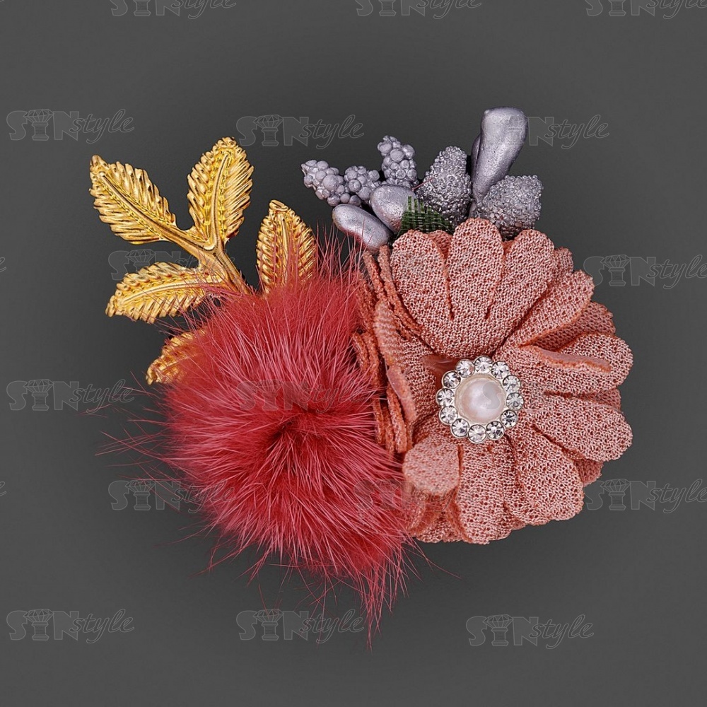 Цветочки декоративные c натуральным мехом, цвет грязно-розовый, размер 50 мм,