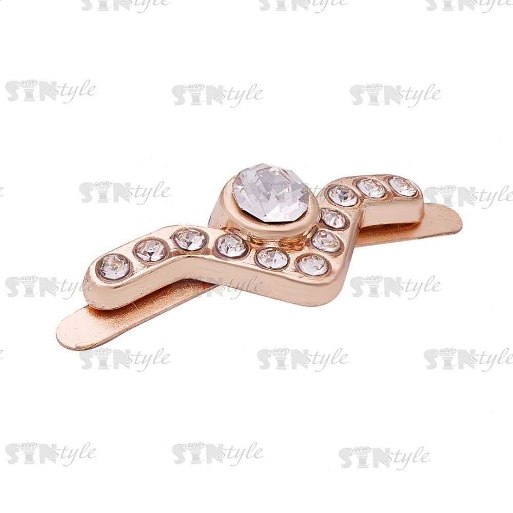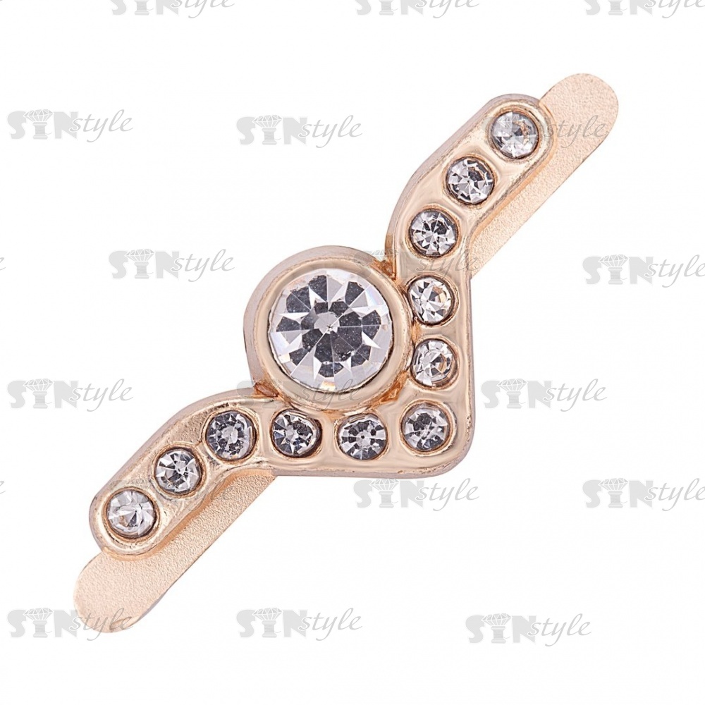 Брошь металлическая, крепление усики, размер 22 мм х 8 мм, цвет золотой+белые стразы