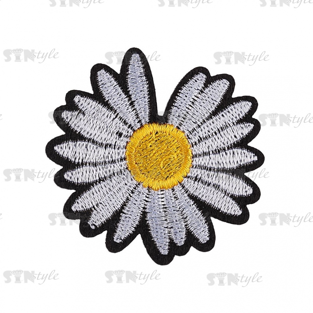 Термоаппликация "Ромашка", диаметр 48 мм, цвет серый/основа белая