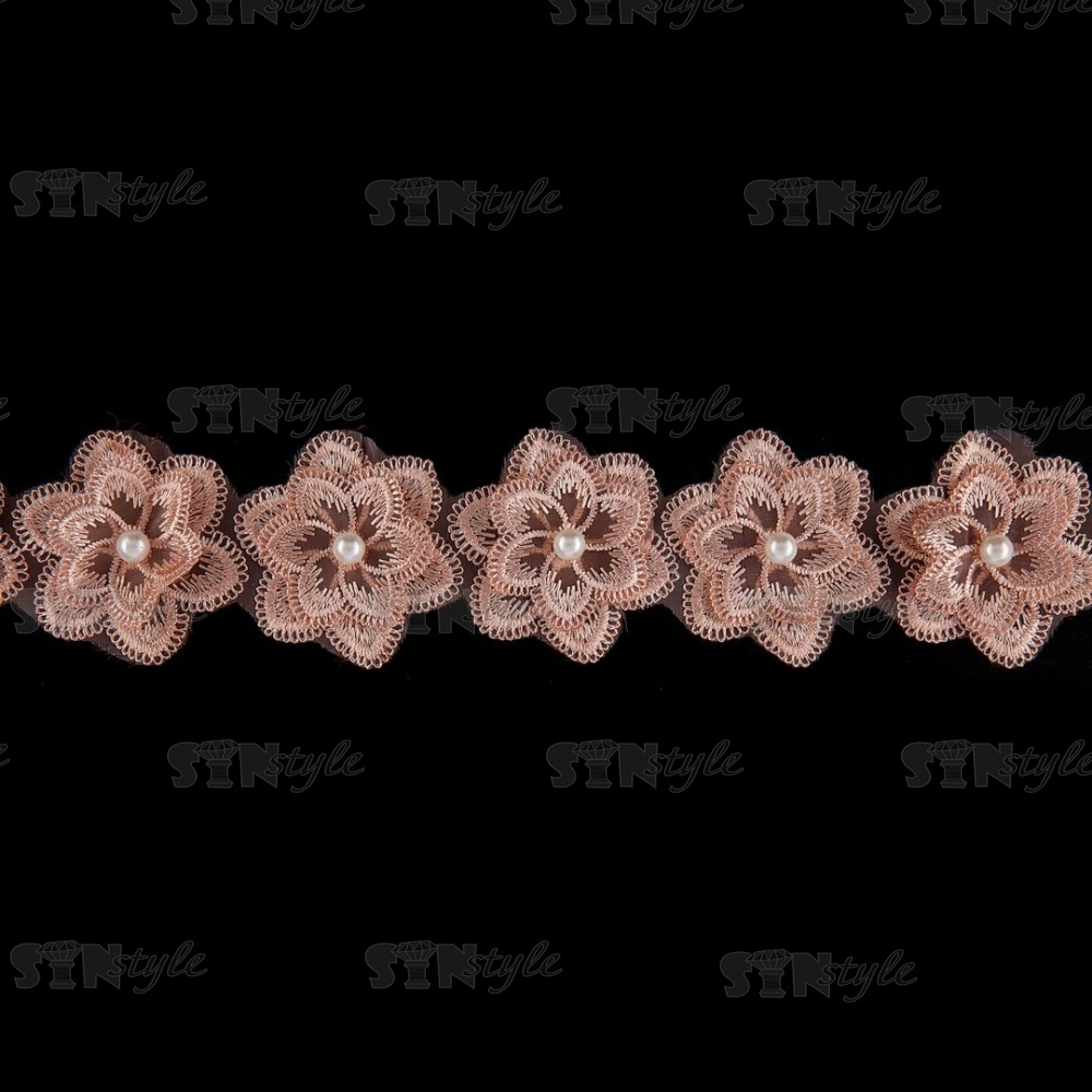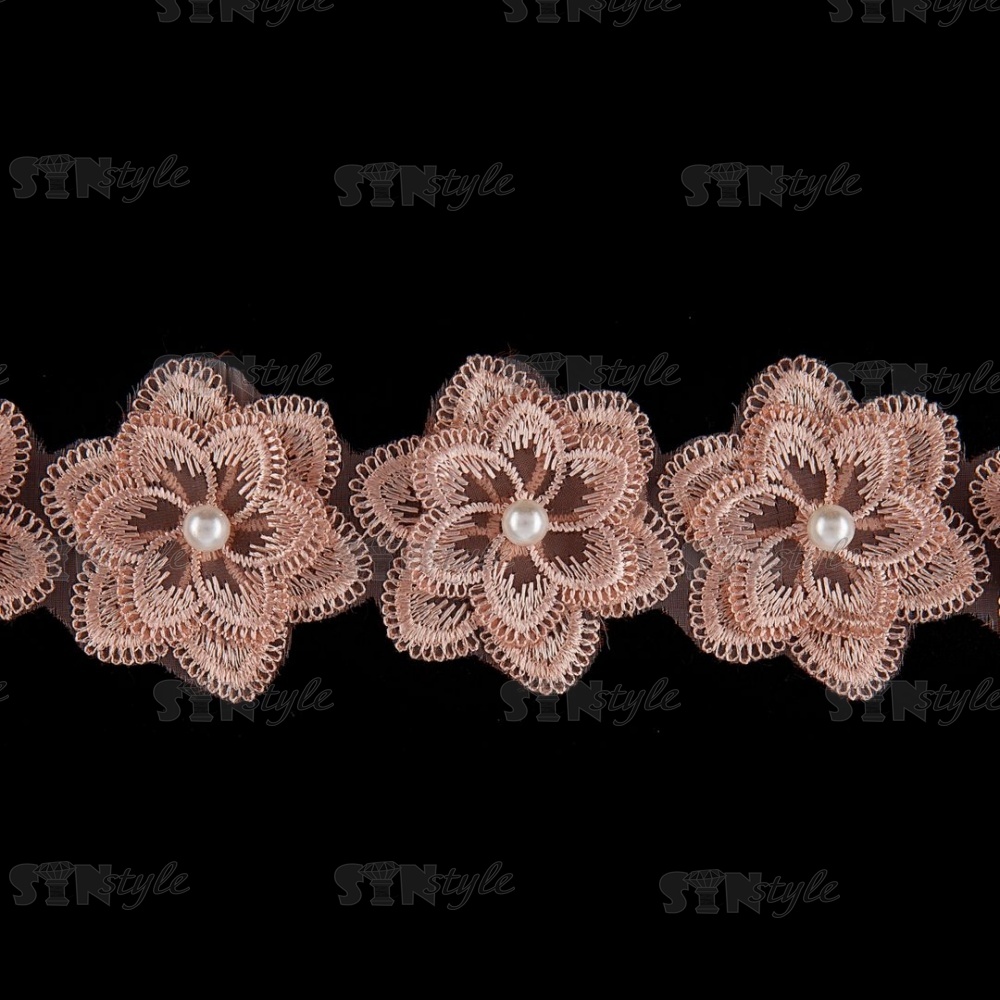 Цветочки из капроновой ленты, ширина 55 мм, намотка 20 ярдов, цвет капучино+белый, № 17