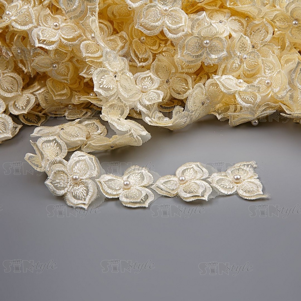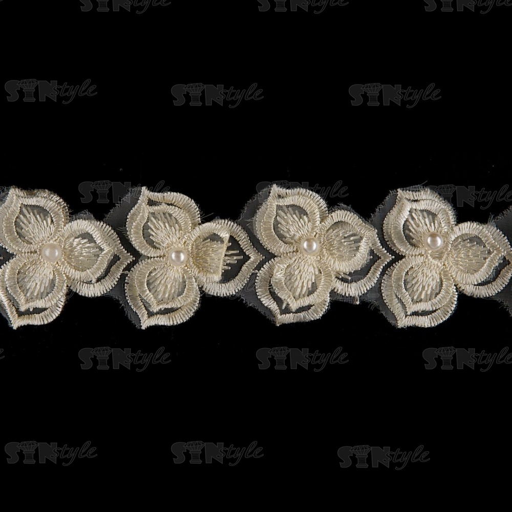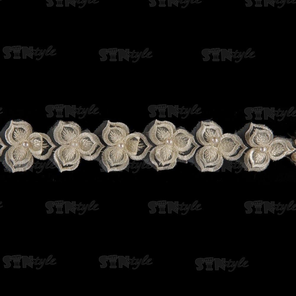 Цветочки из капроновой ленты, ширина 40 мм, намотка 20 ярдов, цвет шампань+белый, № 21