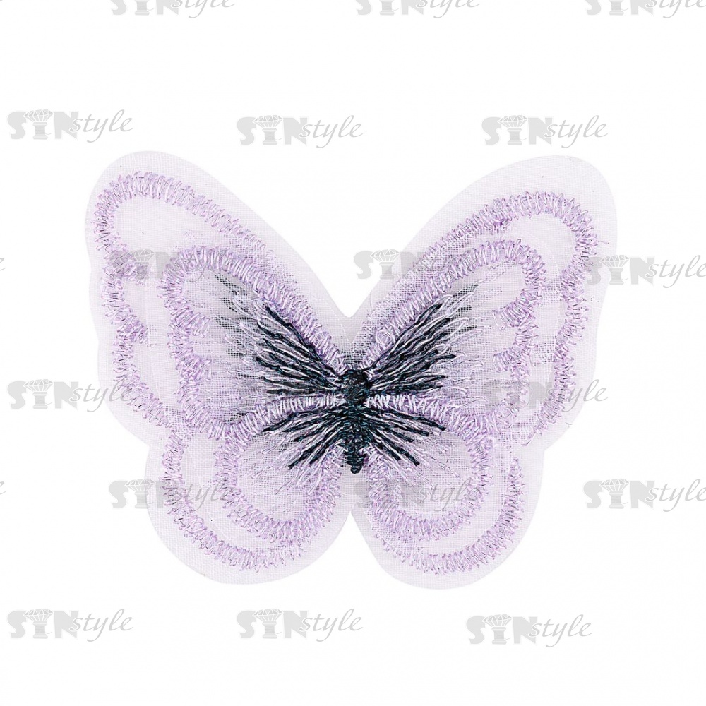 Аппликация "Бабочка", вышивка на капроне, размер 50х35 мм цвет сиреневый