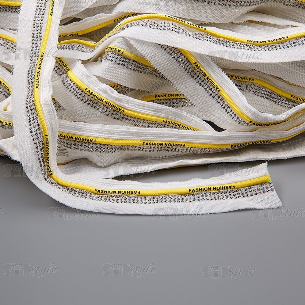 Декоративная тесьма отделочная со стразами, цвет белый+желтый, ширина 30 мм, намотка 50 ярдов