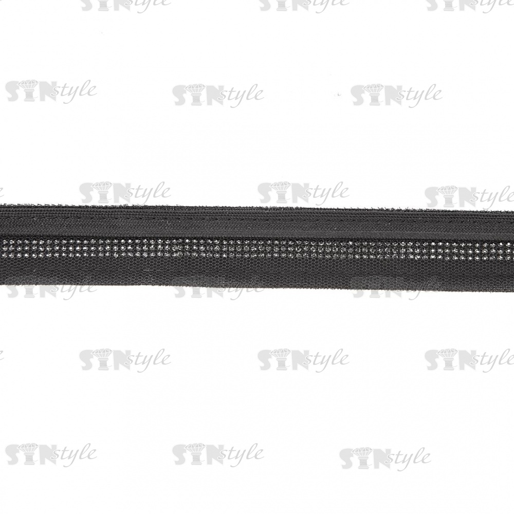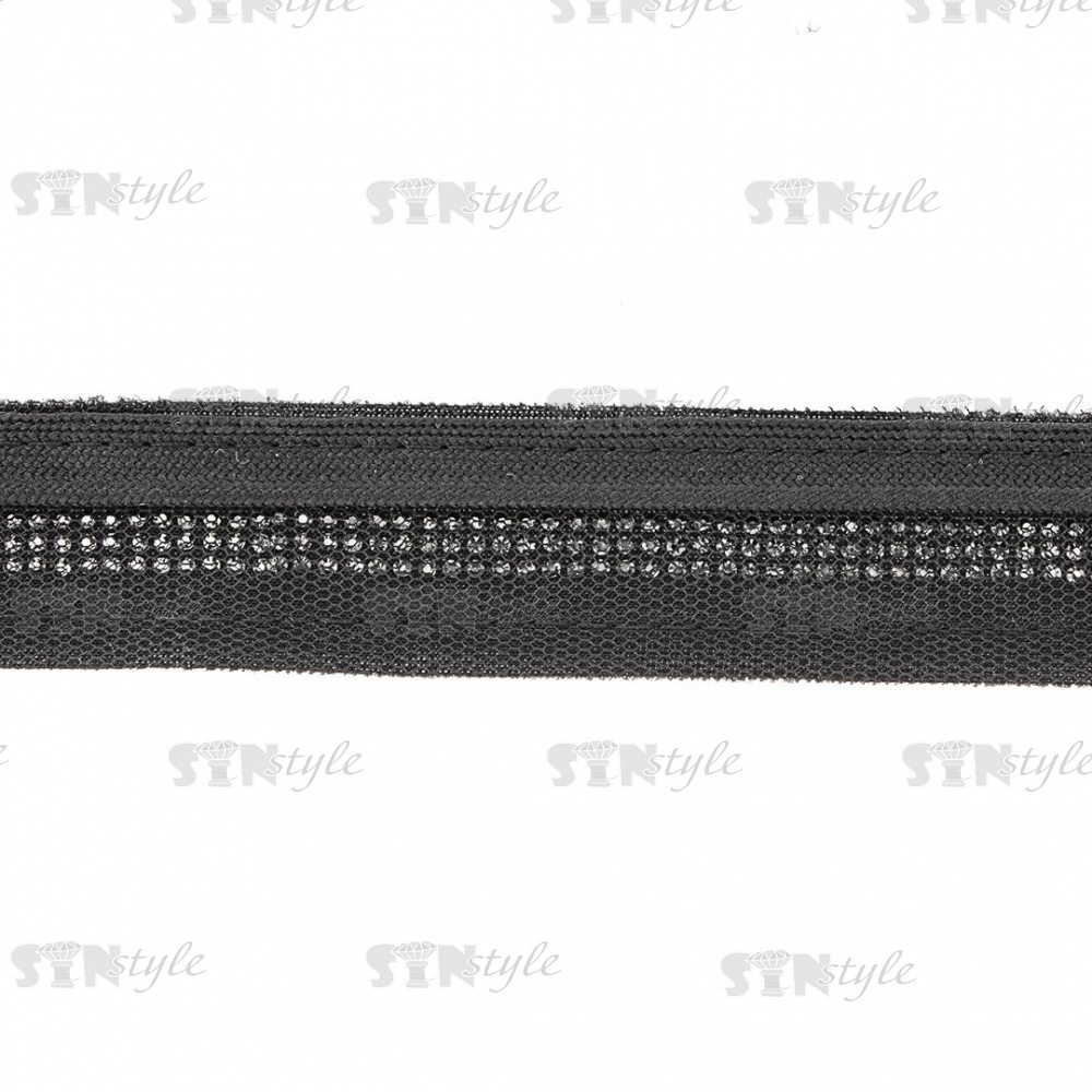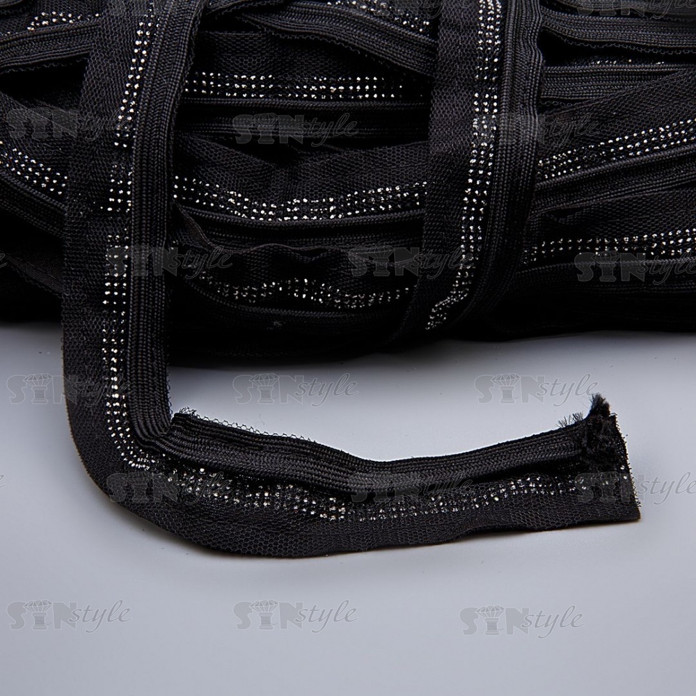 Декоративная тесьма отделочная лампасная со стразами, цвет черный, ширина 30 мм, намотка 50 ярдов