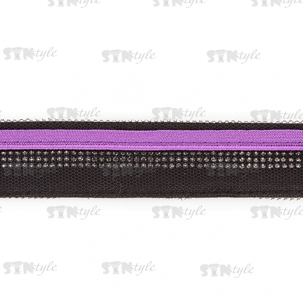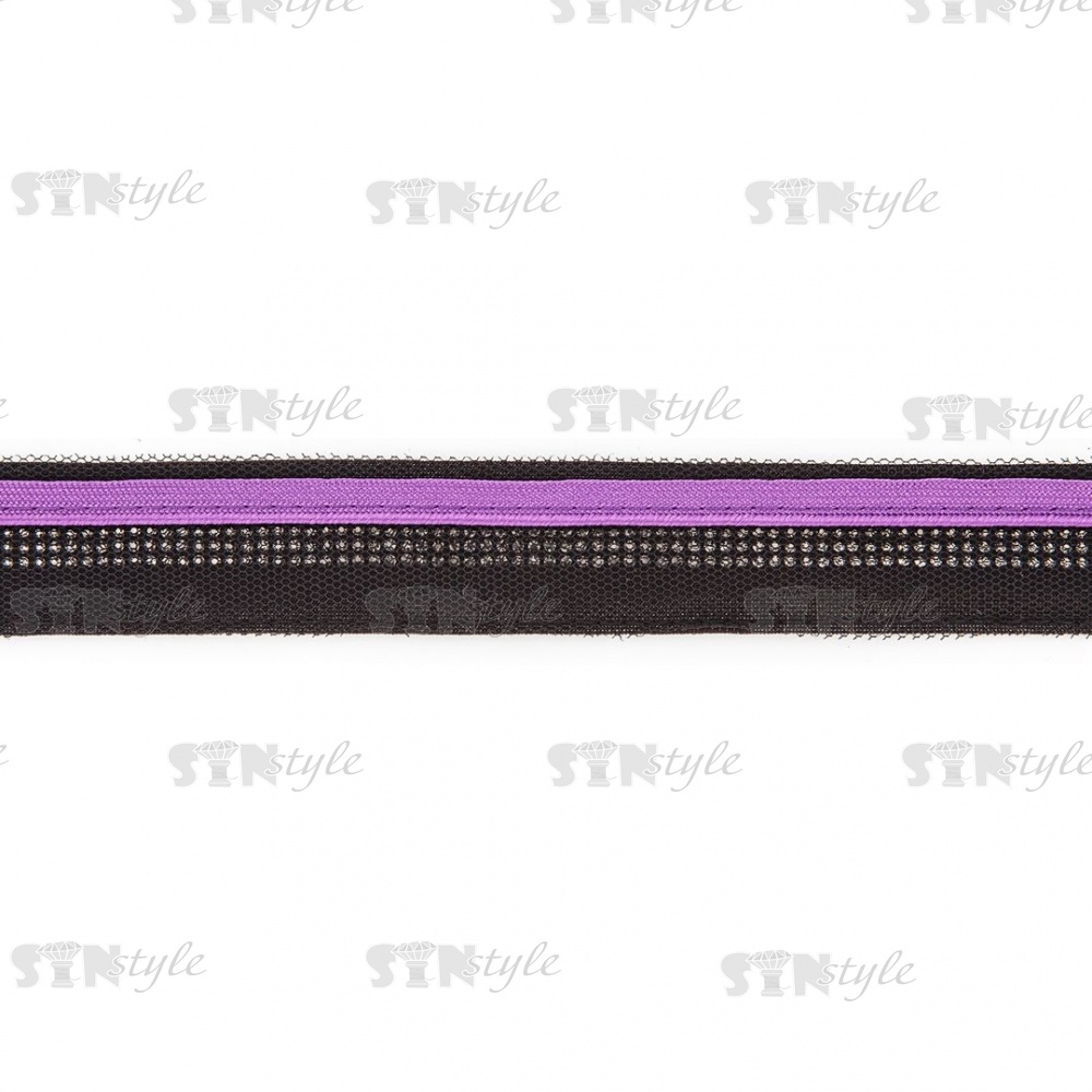 Декоративная тесьма отделочная лампасная со стразами, цвет черный+фиолетовый, ширина 29 мм, намотка 50 ярдов