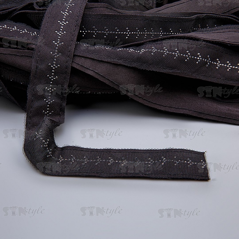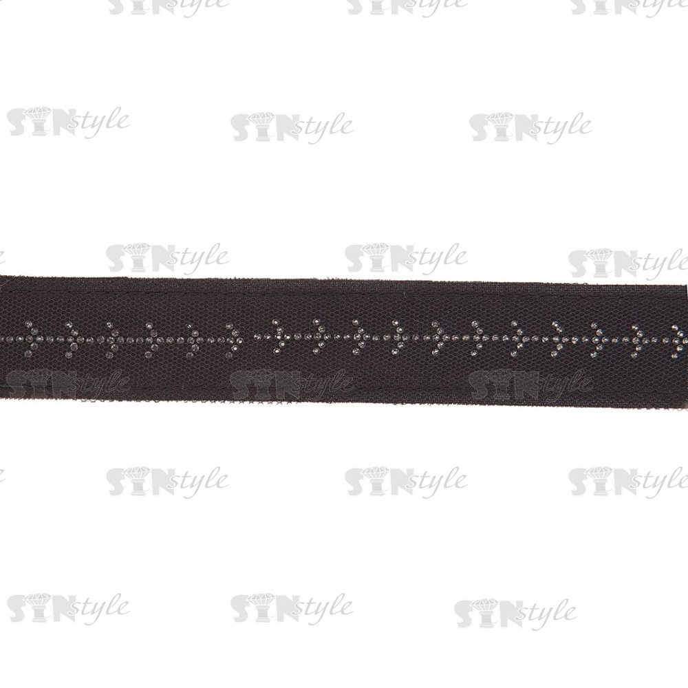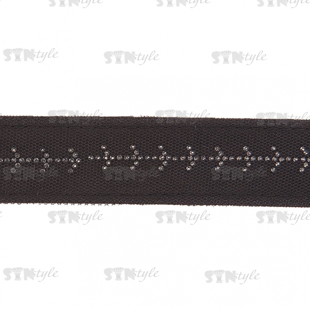 Декоративная тесьма отделочная лампасная со стразами, цвет черный, ширина 32 мм, намотка 50 ярдов