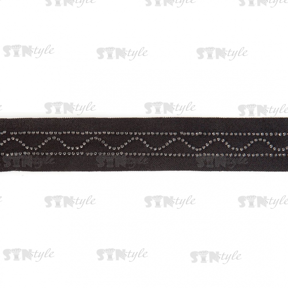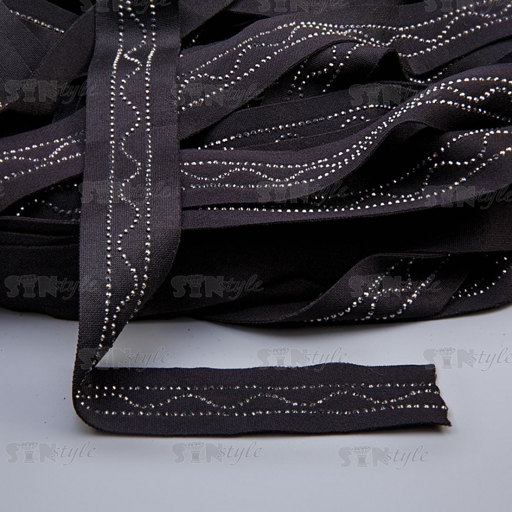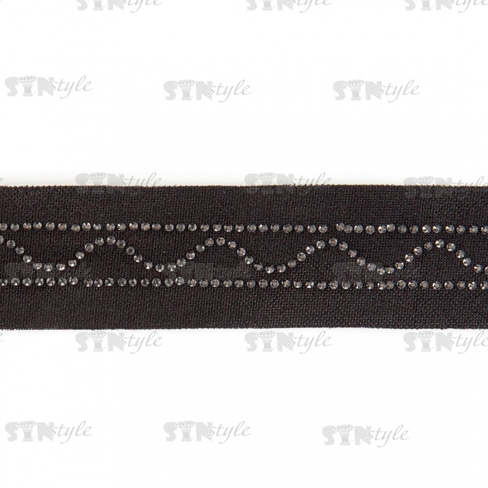 Декоративная тесьма отделочная со стразами, цвет черный, ширина 32 мм, намотка 50 ярдов