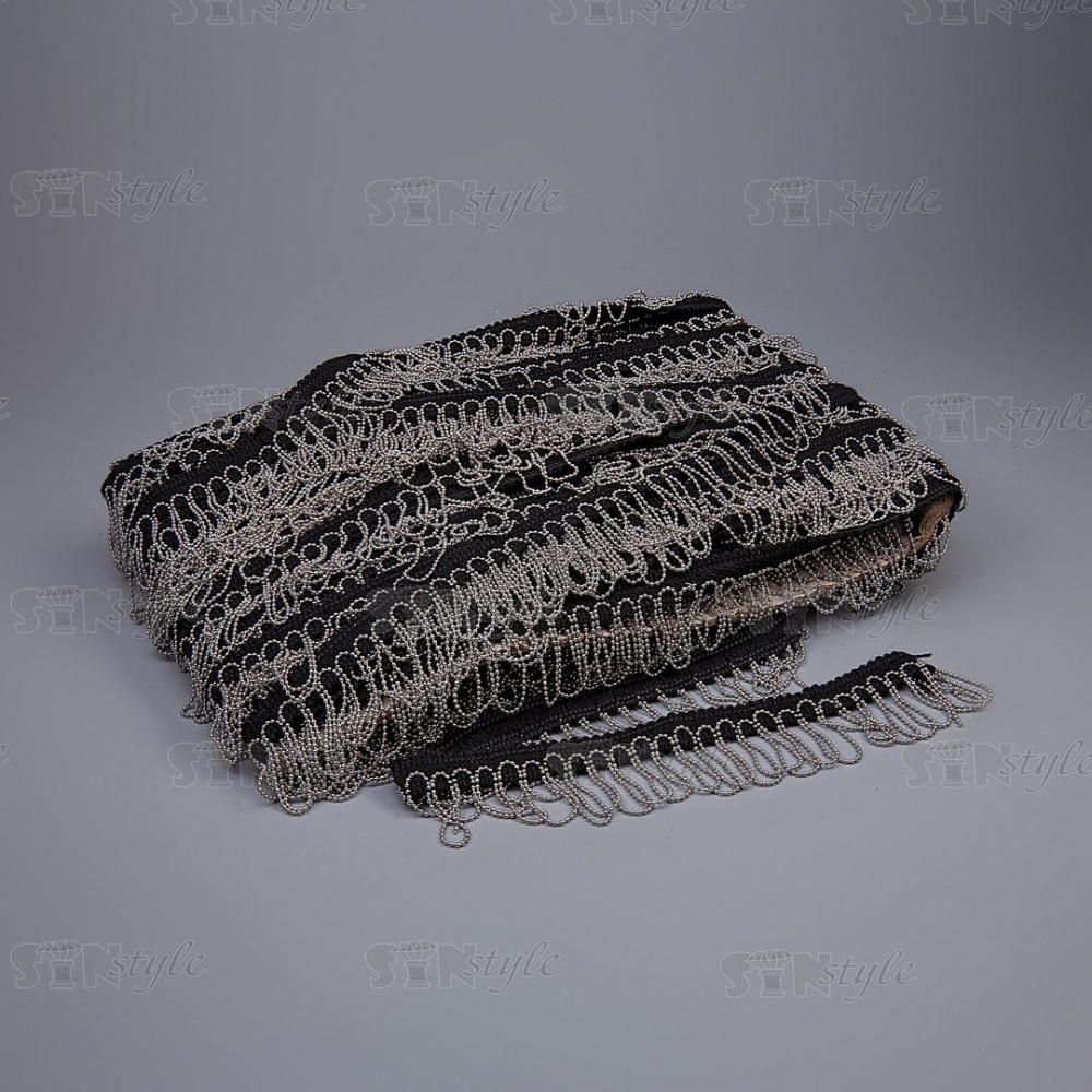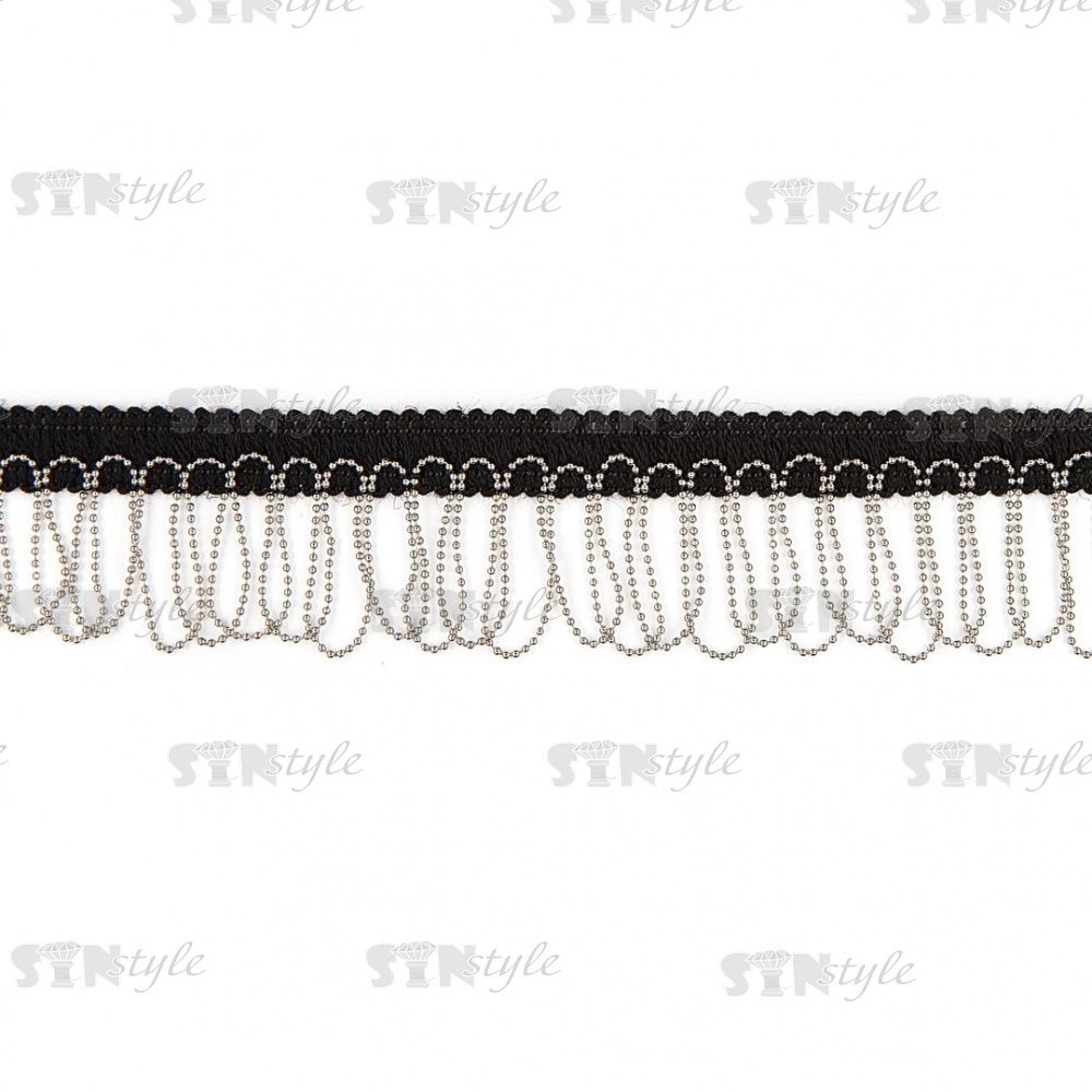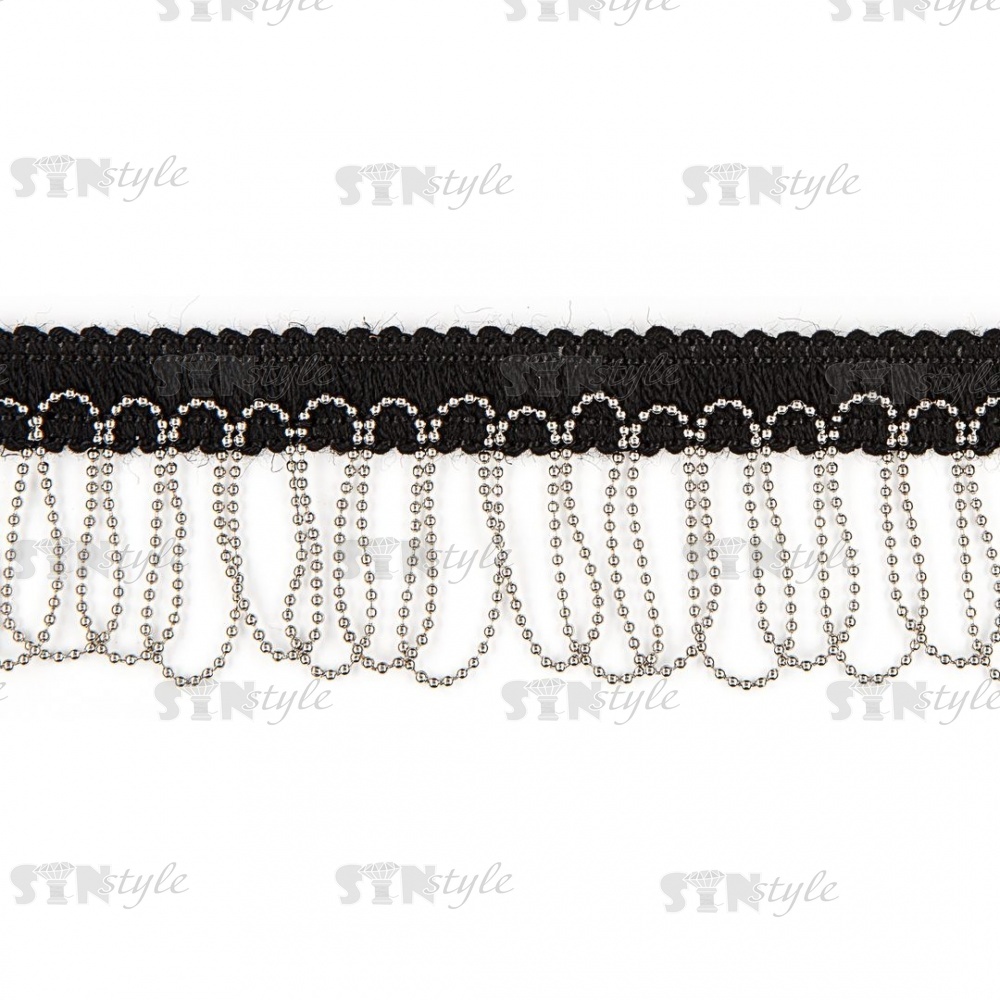 Декоративная тесьма с бахромой отделочная, ширина 40 мм, цвет черный+цепочка цвет никель, намотка 25 ярдов