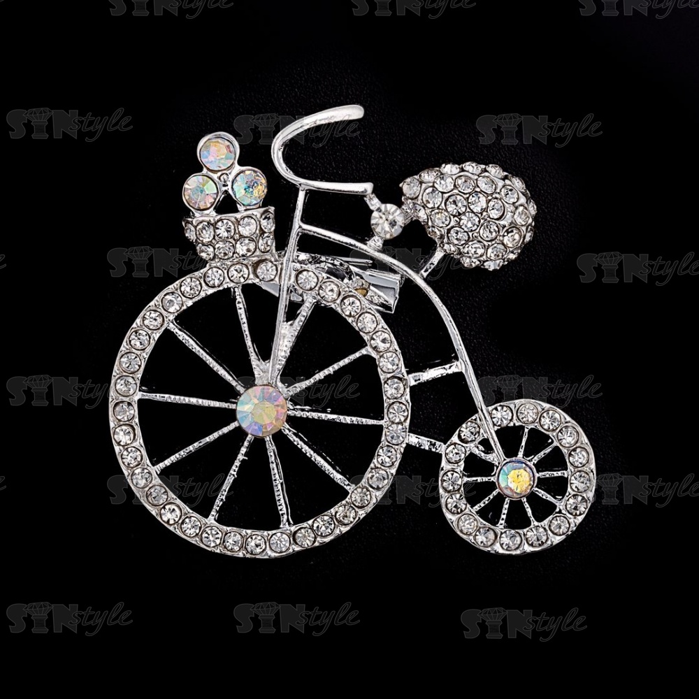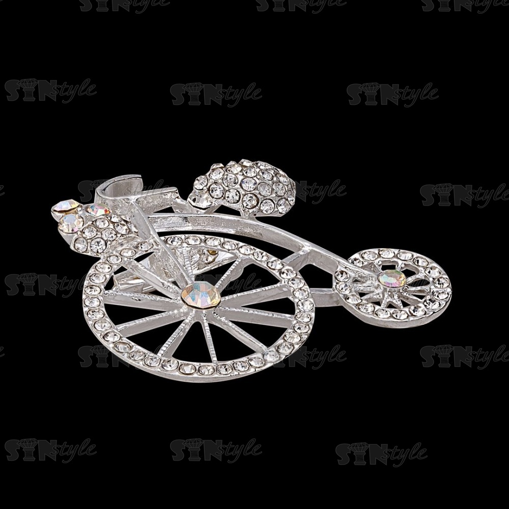 Брошь "Велосипед", застежка булавка, цвет серебряный+белые стразы, размер 40х38 мм