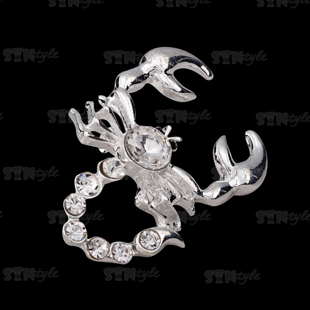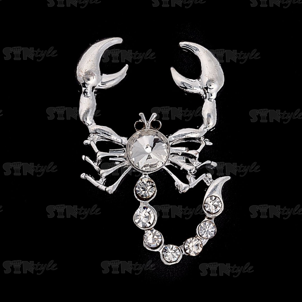 Брошь "Скорпион", размер 28х45 мм, цвет серебряный+стразы белые, застежка булавка