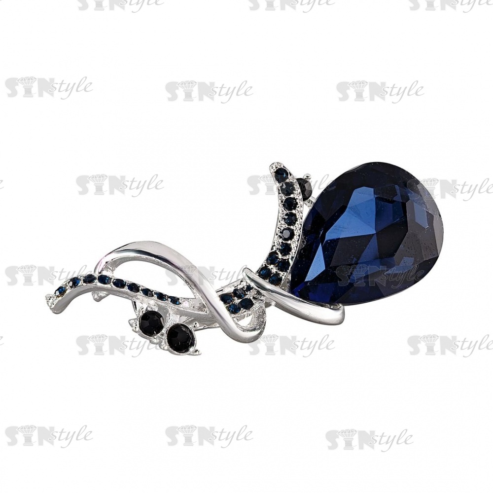 Брошь со стразами размер 22х56 мм, цвет никель+синие стразы, застежка булавка