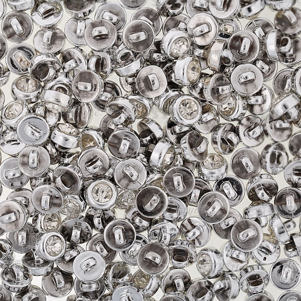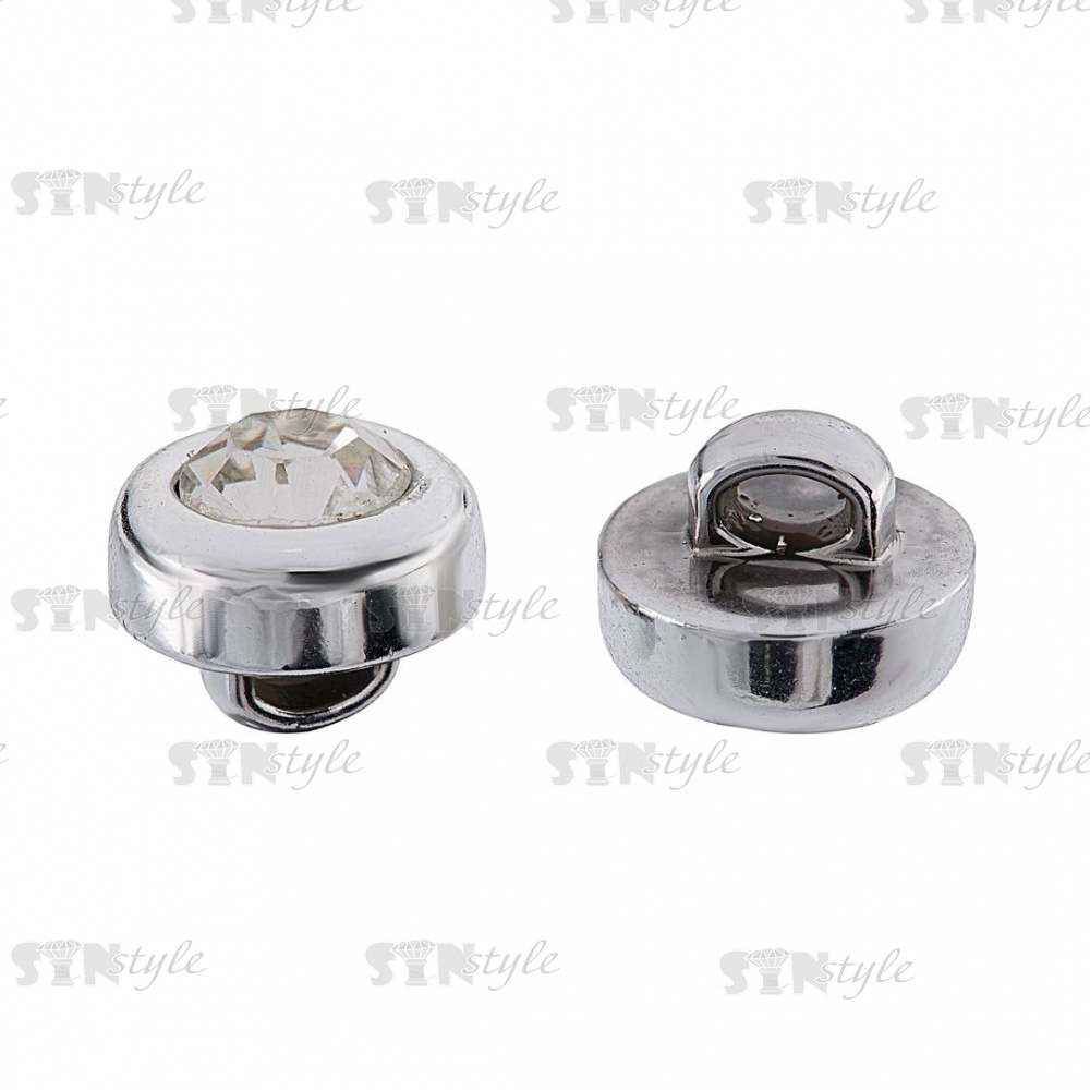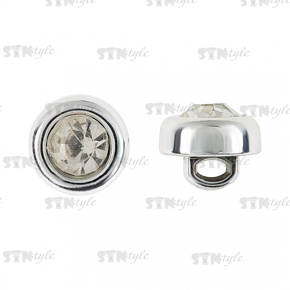 Пуговица пластиковая на ножке, размер 16L, цвет никель/белая страза