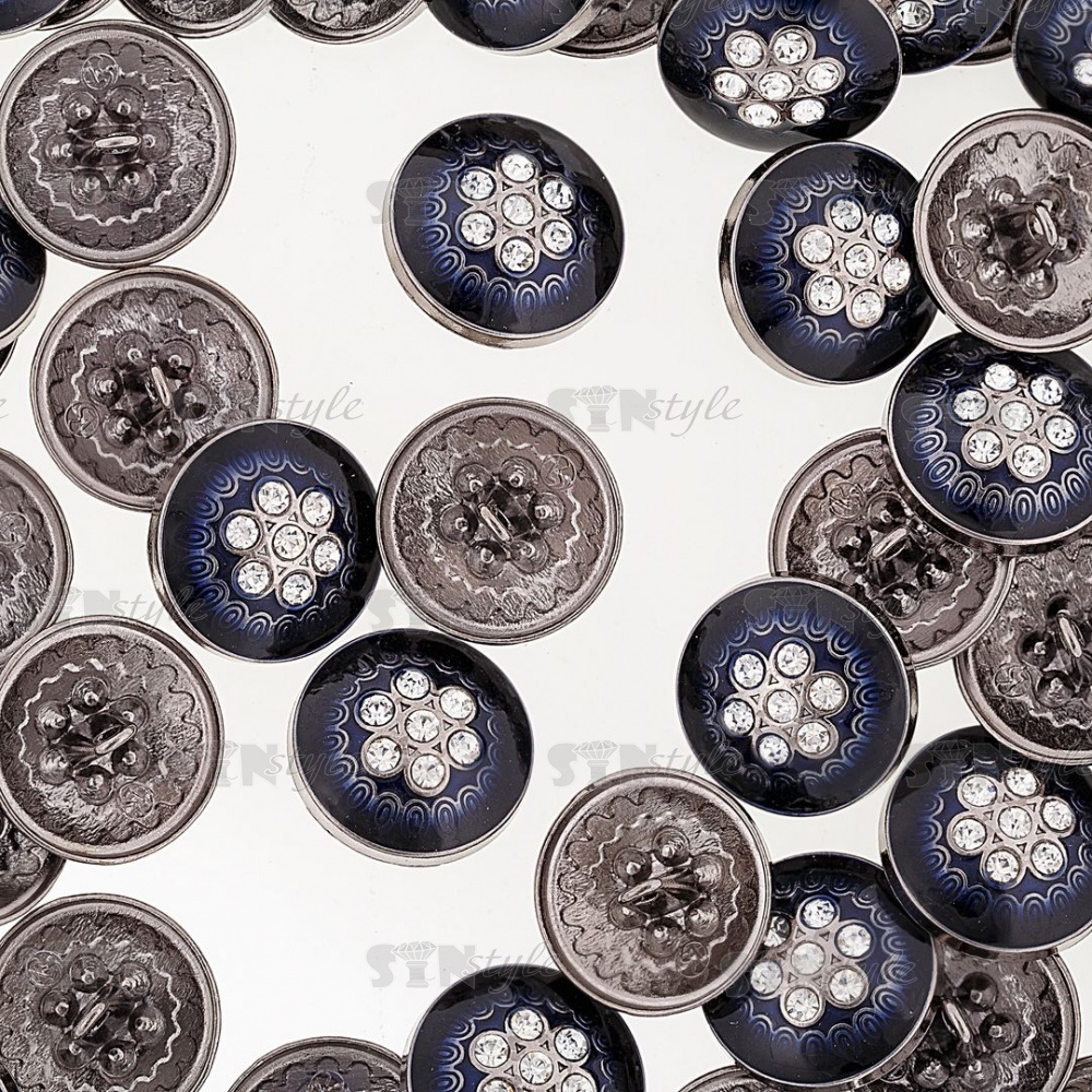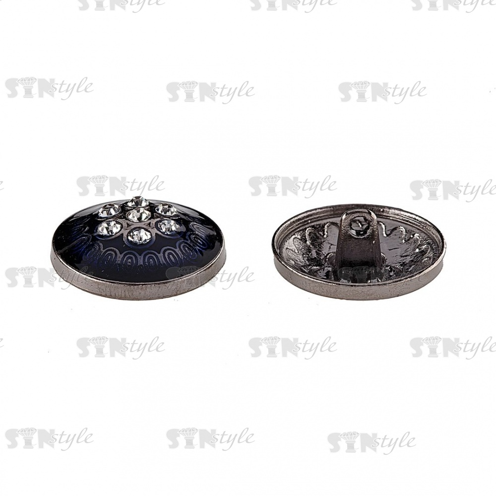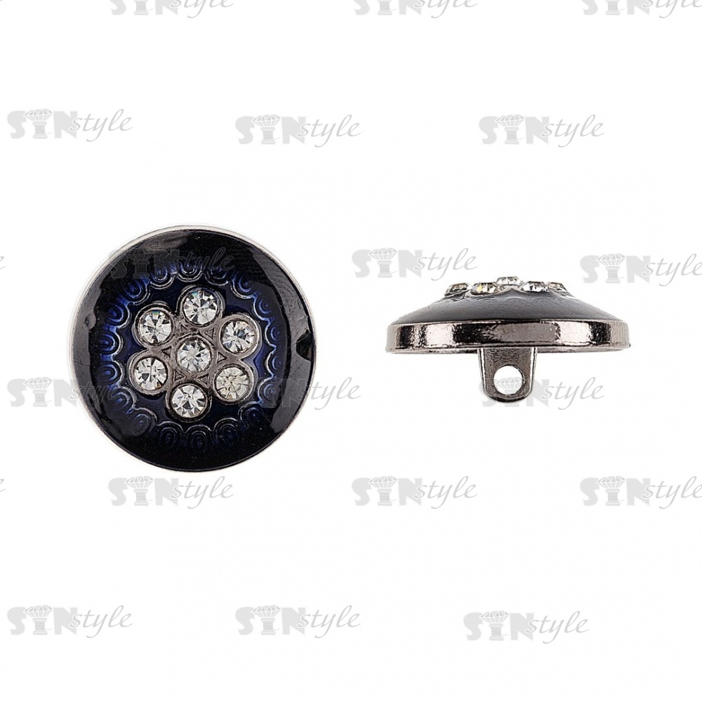 Пуговица металлическая на ножке, размер 28 L, цвет темно-синий+белые стразы