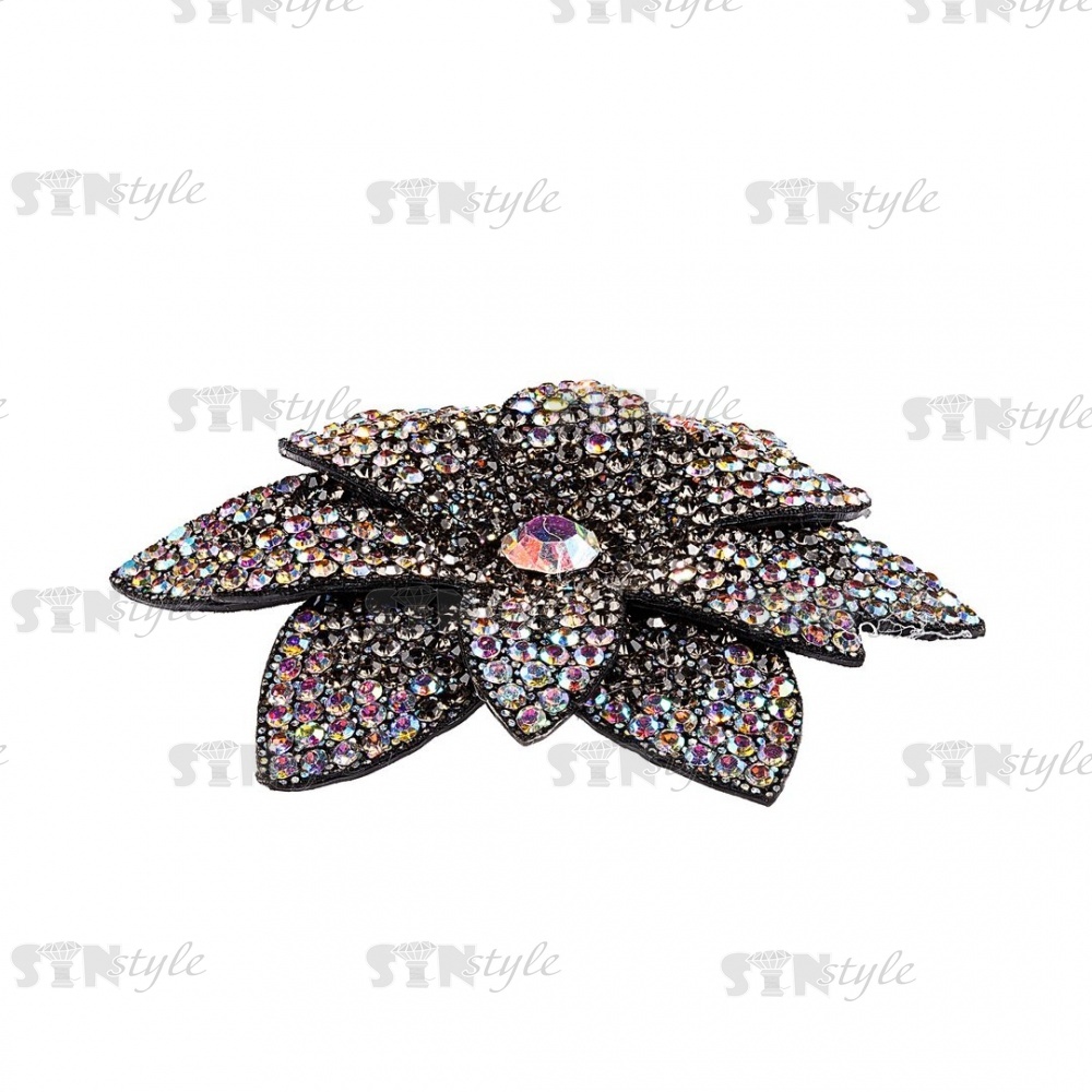 Аппликация с элементами из страз, цвет черный радужный (голография), диаметр 60 мм