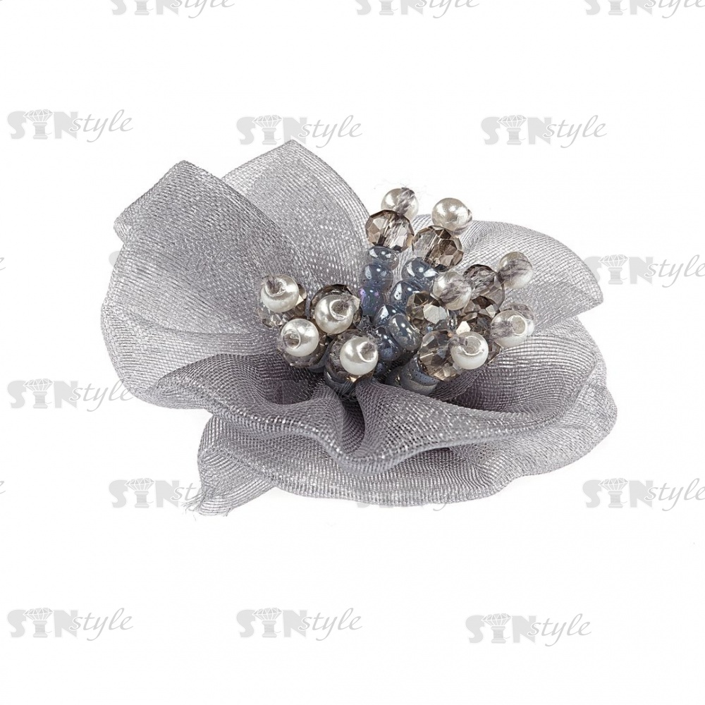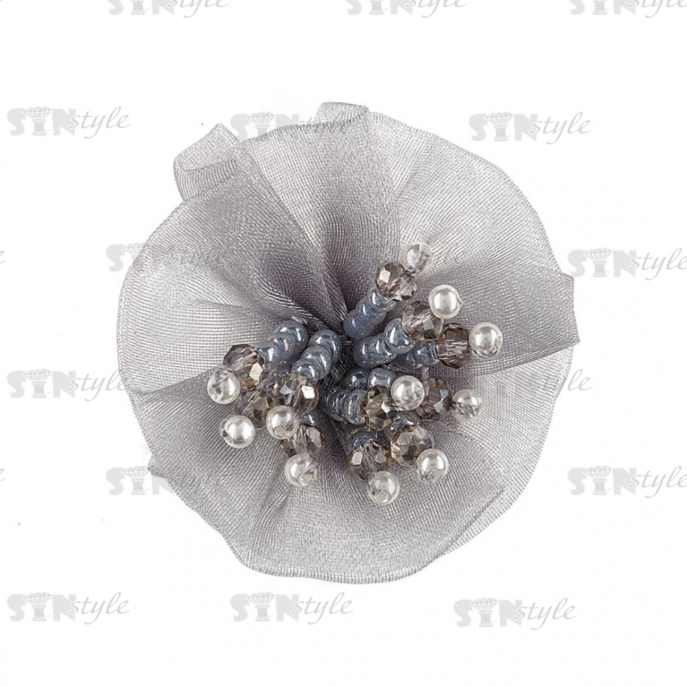 Аппликация с элементами из бисера и страз, цвет серый, размер 50 мм