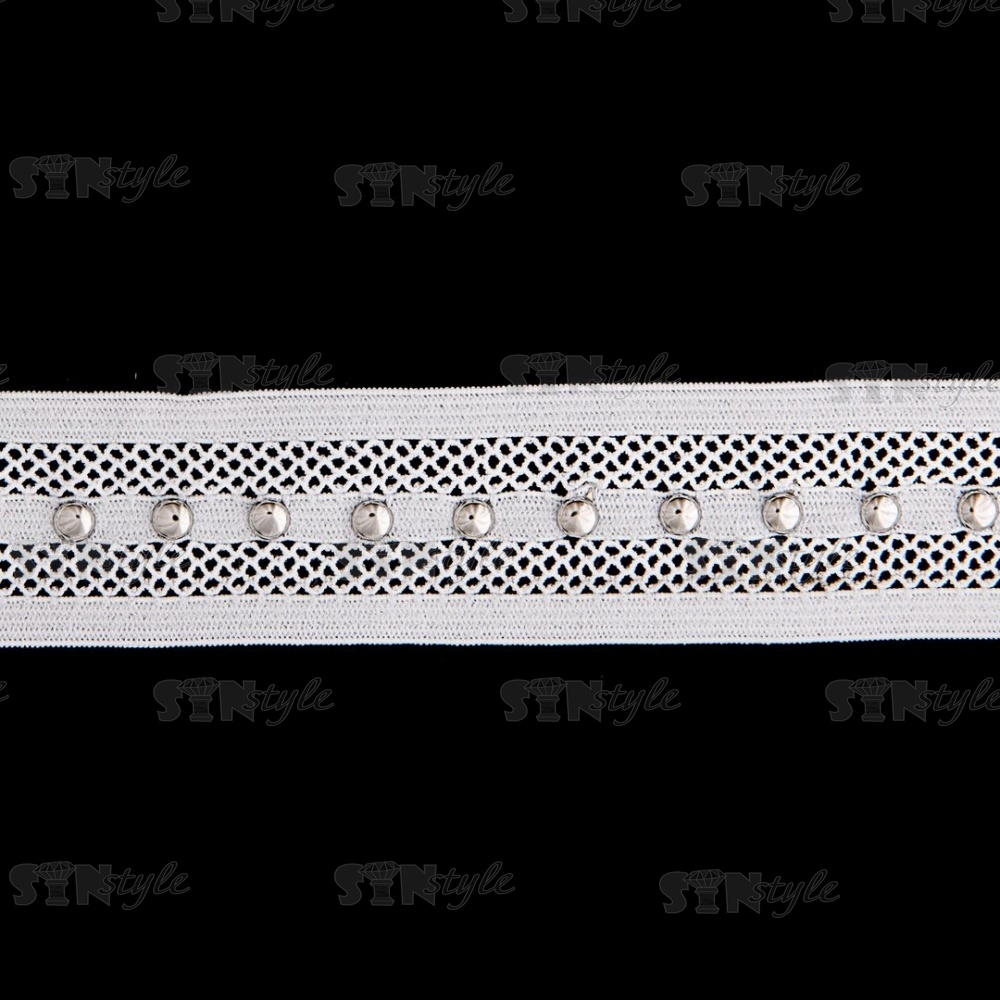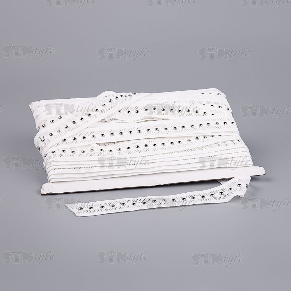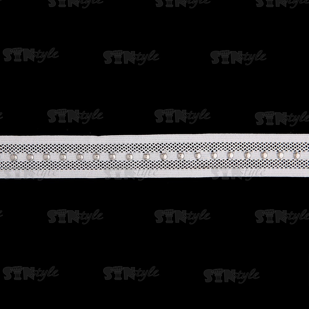 Тесьма отделочная эластичная с клепками, цвет белый, ширина 25 мм, намотка 15 ярдов