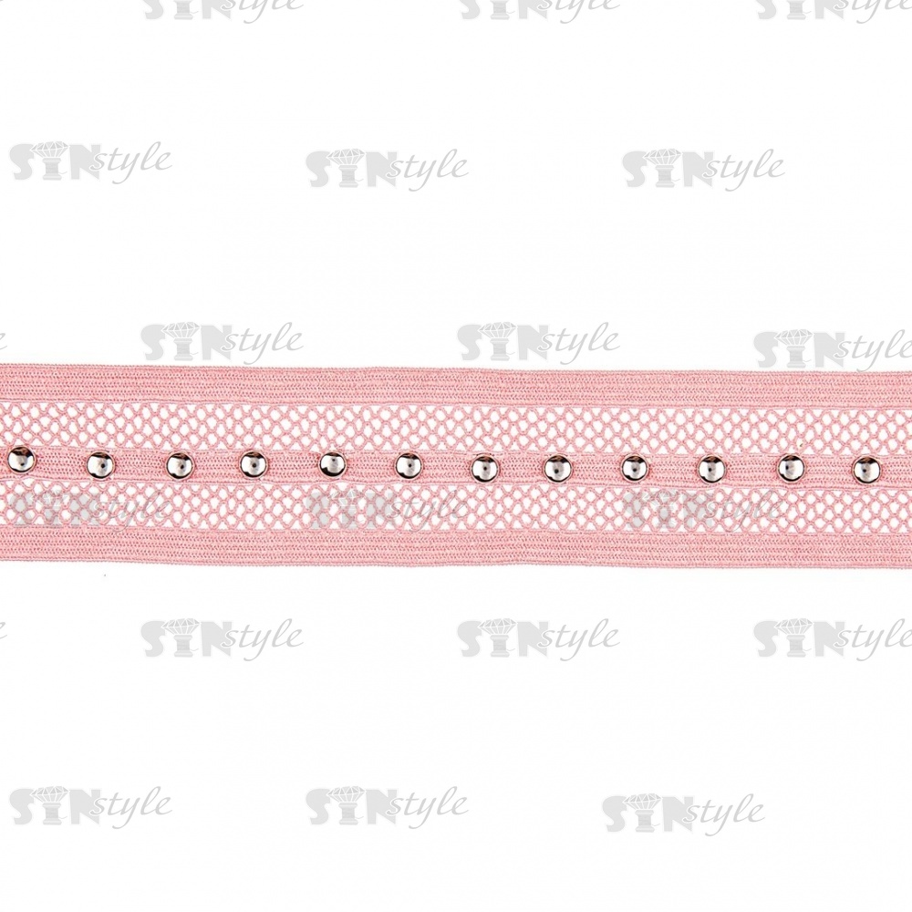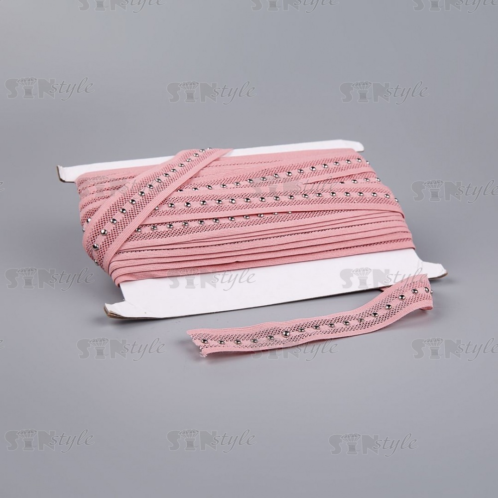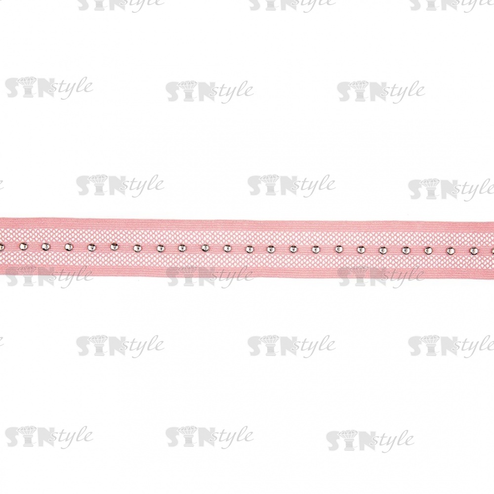 Тесьма отделочная эластичная с клепками, цвет грязно-розовый, ширина 25 мм, намотка 15 ярдов
