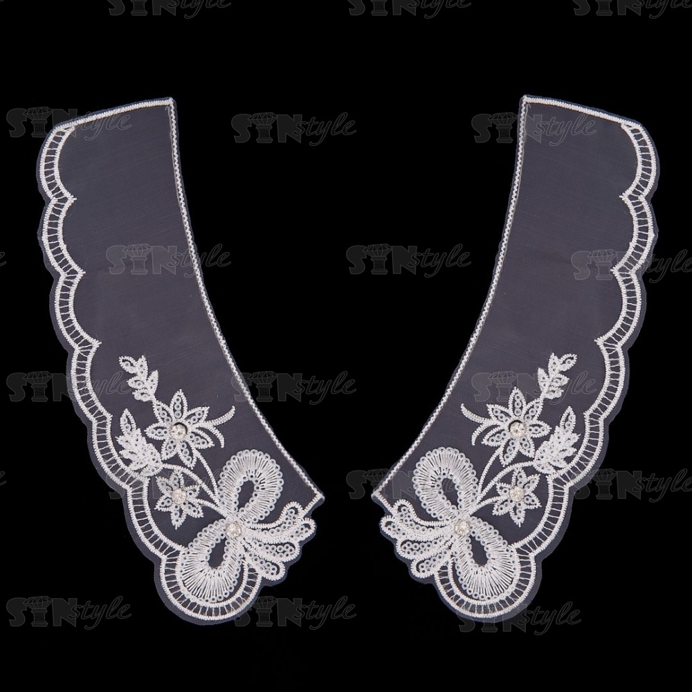 Воротник пришивной из тонкого капрона с цветочной вышивкой, украшенный пайетками и стразами, размер 210х80 мм