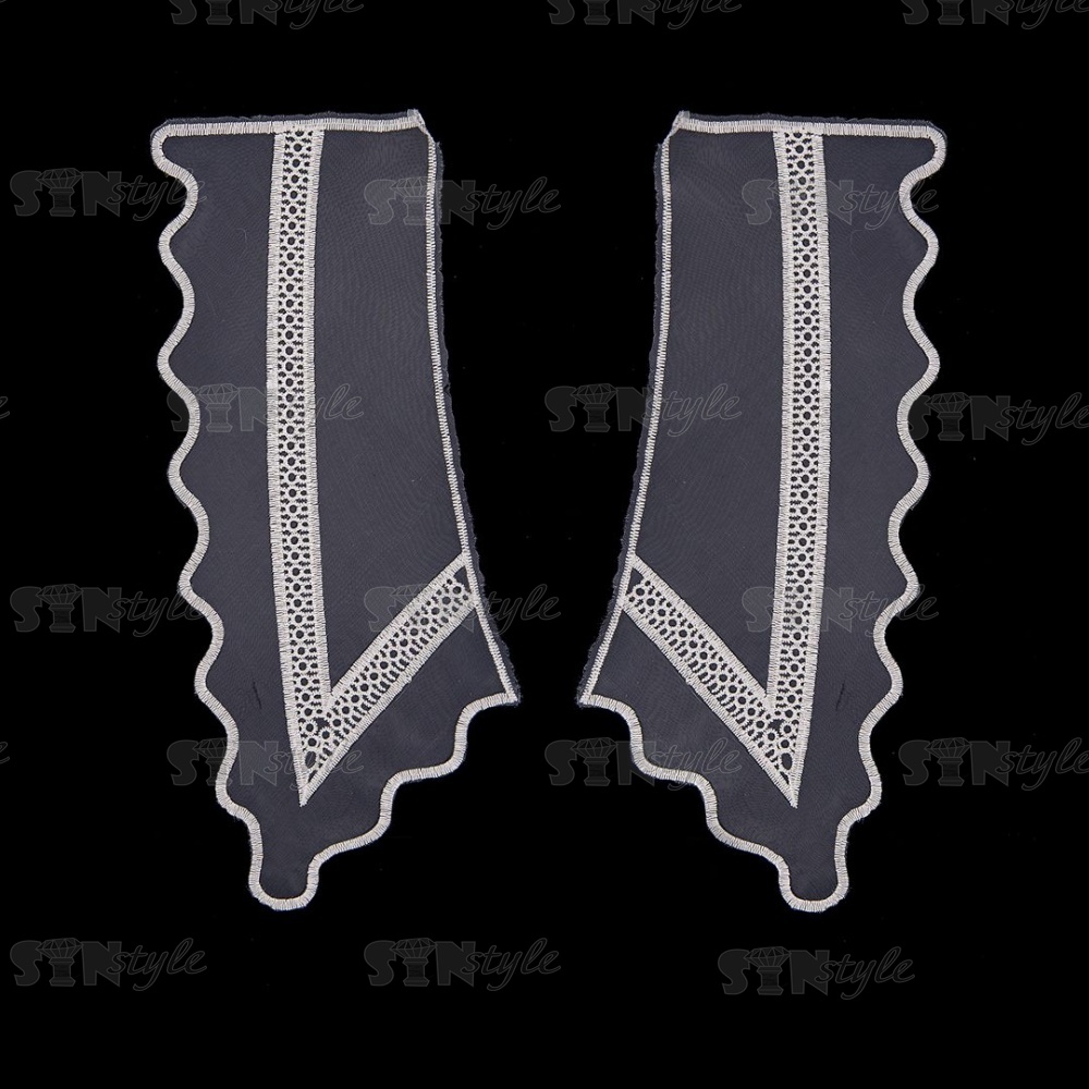 Воротник пришивной из тонкого капрона, с ажурной вышивкой в тон основы в форме маленького воротничка, размер 290х115 мм