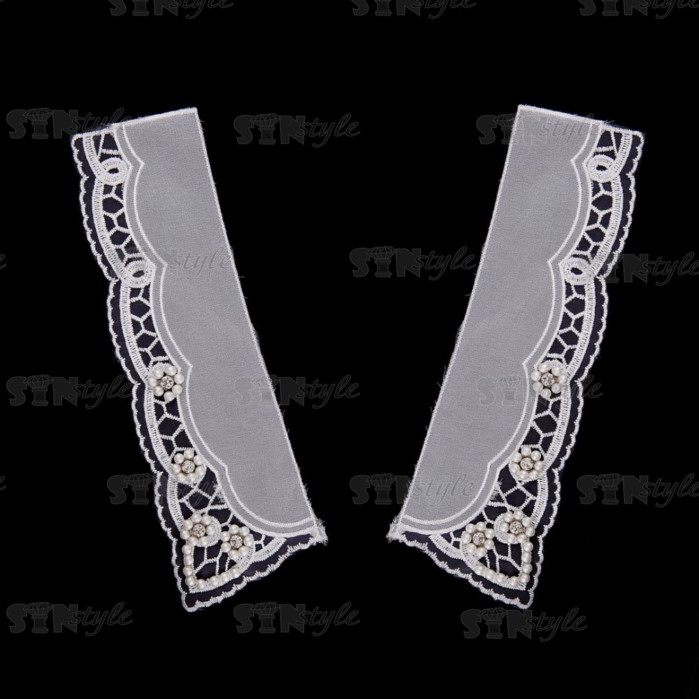 Воротник пришивной двухслойный из капрона с вышивкой, украшенной стразами и бусинами, размер 225х70 мм